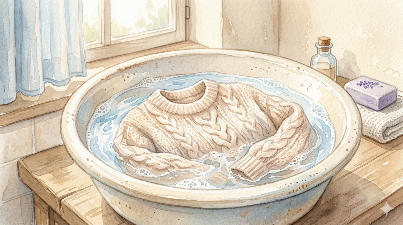 そして何より大切なのは、縮ませない工夫です。洗濯表示の確認・洗濯ネット・おしゃれ着洗剤・手洗いモード・平干し――これらを組み合わせるだけで、セーターの寿命はぐっと延びます。